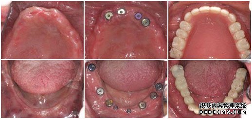 种植牙前                             植入种植体后                   套上烤瓷牙冠完成手术